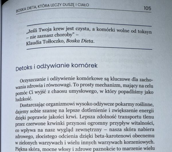 Program cofania chorób cywilizacyjnych w tej książce odnosi się do mądrości biblii oraz medycyny komórkowej i mitochondrialnej, którą zgłębiałam od 2016 roku, kiedy to lekarze postawili przede mną diagnozę śmierci po licznych wstrząsach anafilaktycznych i złożonych chorobach metabolicznych niejasnego pochodzenia.